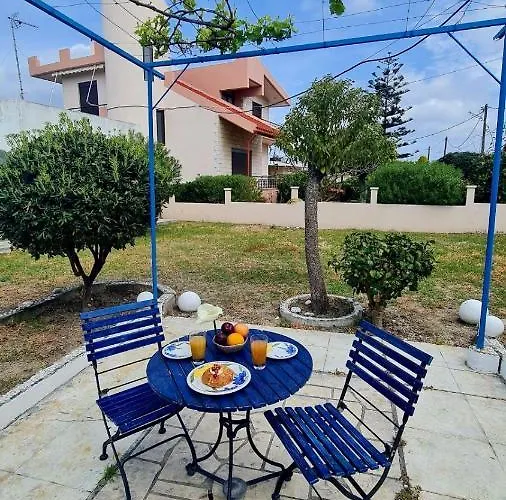 Rhodes Blue Cottage de 36 m^2 est à 25 minutes de marche de la Plage d'Ialyssos et à 25 minutes à pied de Church of Our Lady of Filerimos. La villa a des chambres complétées avec un balcon, une cafetière/théière et une climatisation.